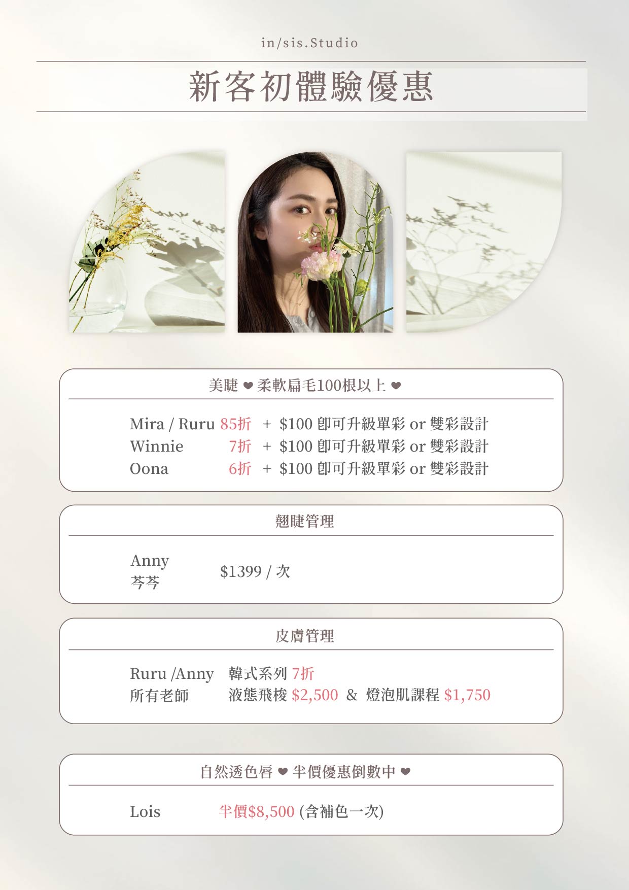 30 6 月 喬遷開幕活動 贈送Jo malone 香水 by insis_lee in 最新消息Comments 7月正式營運囉! 我們每個服務都準備了熱門的贈送品項, 讓服務體驗升級外, 外在也更升級了~ 活動詳情請參考圖文, 活動到7 / 31 新店地址: 桃園市桃園區新埔六街77號14樓之一 預約官方Line: @insis.studio 一律透過我們的線上預約系統完成預約喔